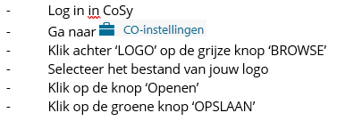 - Het bedrijfslogo van het cursuscentrum toevoegen, dat op de certificaten van de cursisten wordt geplaatst die cursus bij jouw cursuscentrum hebben gevolgd.