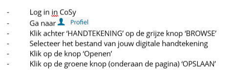 - Jouw digitale handtekening toevoegen, die op de certificaten van de cursisten wordt geplaatst waar je cursus aan hebt gegeven.
