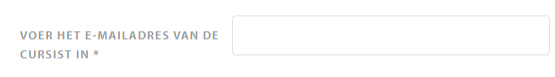 In het volgende scherm kan je de cursist op de cursus toe gaan voegen. Onder de gegevens van de cursist klik je voor No of YES (Afhankelijk of je de cursist gelijk op de cursus wilt bevestigen, zodat de cursist direct bij het online cursusmateriaal kan) en zet je een vinkje voor de verklaring.